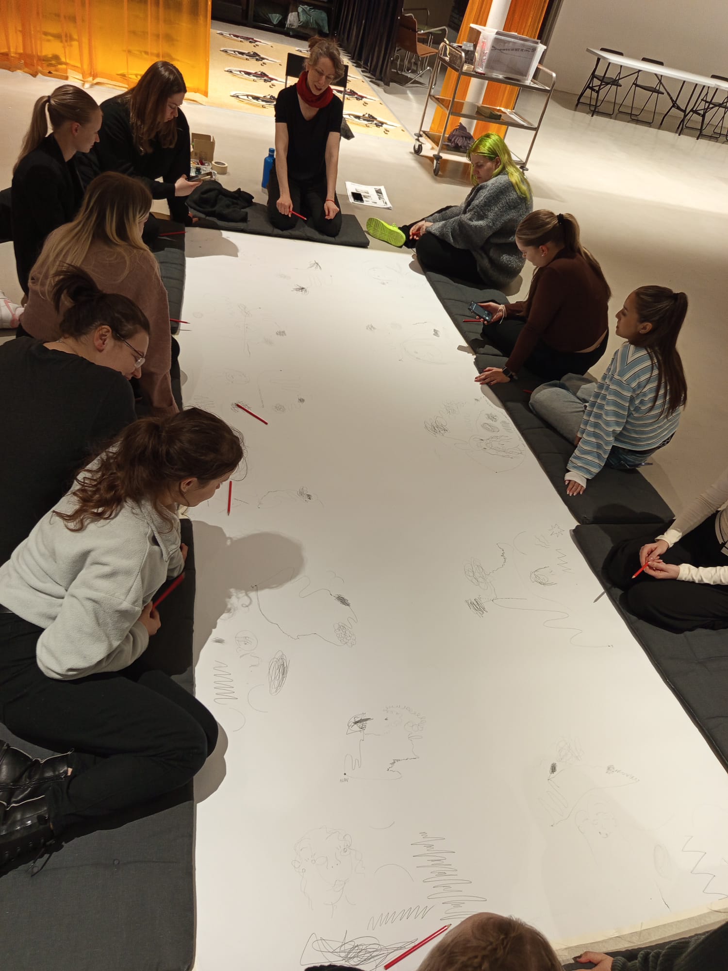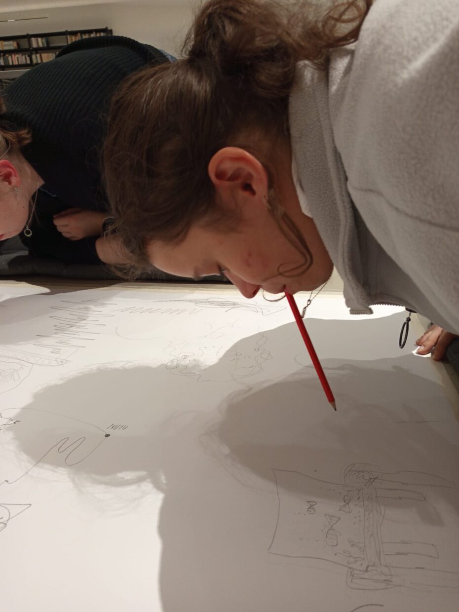 Seznámili se s tím, jak se z obyčejné kresby může stát akce, jak funguje kresba s překážkou nebo mimo plochu papíru a jak s těmito principy pracují současní umělci.